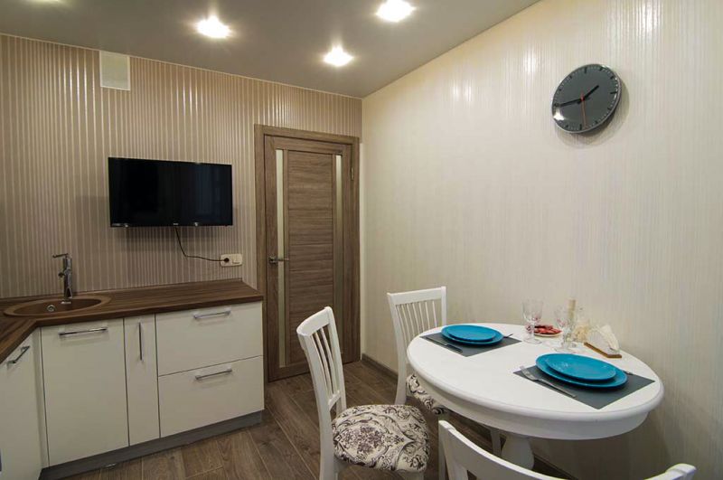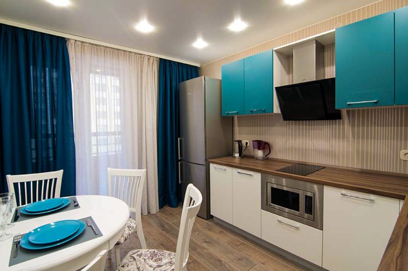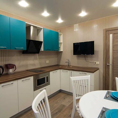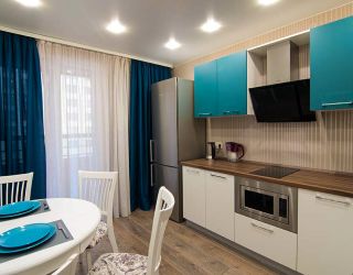 Однокомнатные апартаменты разместились в 17-этажном доме на Тихом проезде. На придомовой территории обустроены детские и спортивные площадки, парковочные места для жильцов и гостей дома. В апартаментах – современный ремонт, интерьер выдержан в светлых тонах с акцентом на детали. В спальне установлена широкая кровать для двоих, кабельное ТВ, шторы с затемнением. На кухне – балкон, угловой гарнитур, керамическая варочная панель, микроволновая печь, большой холодильник. Санузел совмещенный, с ванной и стиральной машиной. В прихожей – просторный зеркальный шкаф-купе. Для большего удобства гостей предусмотрен доступ к wi-fi.